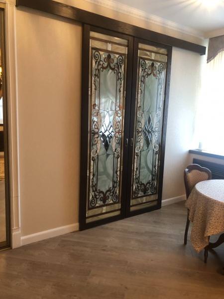 В номере: двуспальная кровать, телевизор, диван, кресло, стол, шкаф.